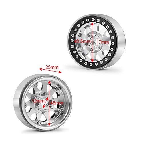 1,9 cerchioni Beadlock, set di 4 ruote in metallo, per 1/10 RC Crawler Axial SCX10 SCX10 II 90046 SCX10 III AXI03007 TRX4 D90 (argento e nero)