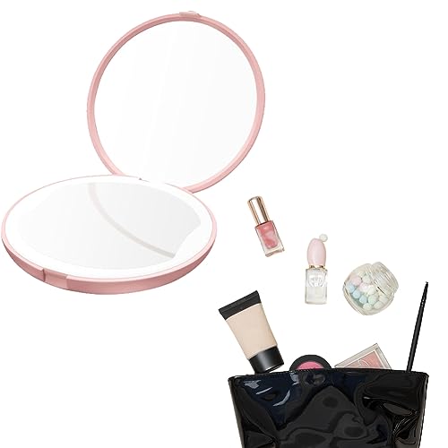 Cerioll Specchio da Borsa, LED Specchio Compatto, Specchietto da Borsetta, Bifacciale Specchio Portatile, Specchio Portatile Tascabile Illuminato, Specchio Compatto Portatile da Borsetta(Rosa)