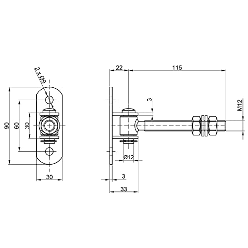 Cerniera per cancello, M12, con viti piegate (2, M12)