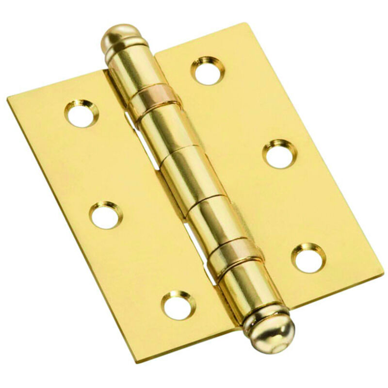 Con cuscinetti a sfera, pomolo tondo, viti, perno levabile. In Acciaio Ottonato