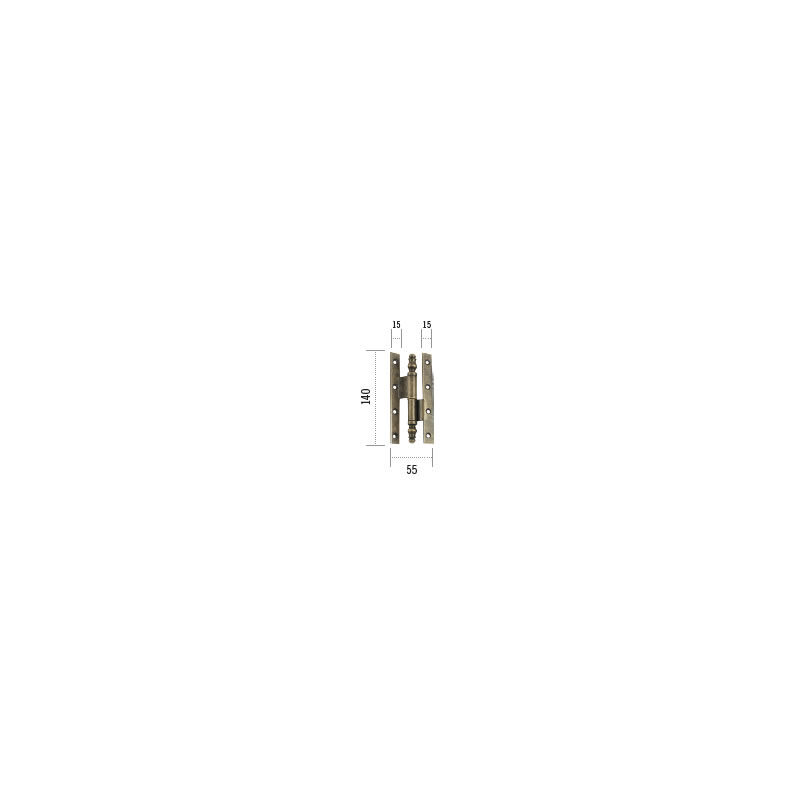Cerniera piegata per serramento esterno o porta interna in ferro. Ingombro mm.55x140. Versione destra. Finitura ferro verniciato (ruggine).