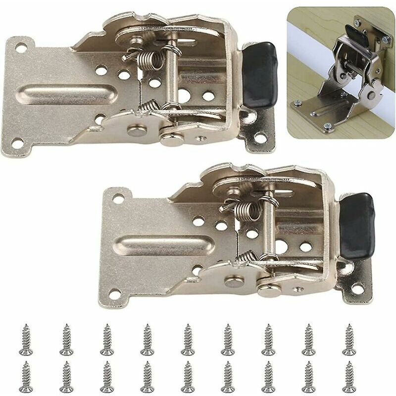 Materiale in acciaio durevole La cerniera pieghevole è realizzata in acciaio, che è durevole, resistente all'usura e non facile da arrugginire. Il carico massimo è di 30 kg (66 lb) per coppia. Cerniera autobloccanteLa cerniera pieghevole può essere autobloccante sia che sia aperta o chiusa a 90 gradi o 180 gradi. Interruttore di rilascioLa cerniera autobloccante è dotata di un interruttore di rilascio, quando è necessario regolare la scheda, basta premere e tenere premuto l'interruttore. Facile da installare La cerniera ha viti di montaggio, che possono essere facilmente fissate. Nota: prima dell'installazione, la mano non ha una posizione di supporto, queste staffe sono difficili da piegare o rilasciare, quindi possono essere piegate normalmente dopo l'installazione. Ampia applicazione Perfetto per assi di legno con larghezza fino a 30 cm, come gambe di tavoli per mobili, letto pieghevole in legno, banco da lavoro, tavolo da pranzo, piattaforma di lavoro, ecc. Fai da te e altre