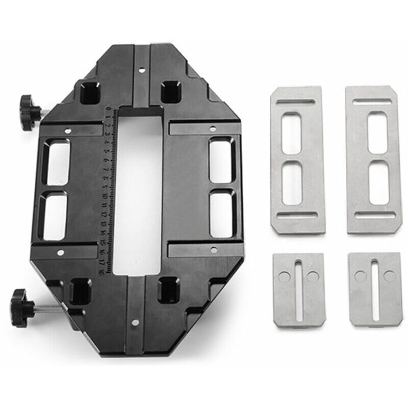 Speciale apriporta per cerniera in legno per la lavorazione del legno, posizionamento preciso, maschiatura rapida, miglioramento dell'efficienza del lavoro. Design antiscivolo in gomma, bloccaggio di sicurezza, nessun danno alla porta. Massimo. La distanza di serraggio è di 6 cm. indicazioni, con scale, posizione precisa.Realizzato in lega di alluminio di alta qualità, leggero, resistente, durevole e di lunga durata.Utilizzare le viti a testa zigrinata per fissare, senza attrezzi, il serraggio rapido. La parte del morsetto adotta un design antiscivolo in gomma per proteggere la porta in legno.Dotata di un manicotto filettato in acciaio inossidabile nel foro della vite, che protegge efficacemente la filettatura interna del dispositivo e ne prolunga la durata. Specifiche: Materiale: lega di alluminio Dimensione apertura: fino a 18 cm Distanza di serraggio: max. 6 cm Dimensioni articolo: 34 * 20 * 6 cm/ 13,4 * 7,9 * 2,4 pollici Dimensioni confezione: 35 * 22 * ??9 cm/ 13,8 * 8, 7 * 3,5