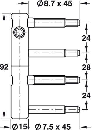 Dimensioni: diametro del cinturino: 15 mm - Altezza del cinturino: 92 mm - Distanza asse: 28 mm - Lunghezza bullone: 45 mm
