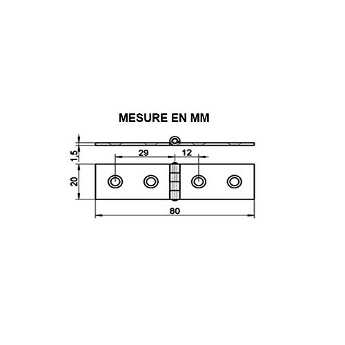 Cerniera rettangolare 80 x 20 mm, spessore 1,5 mm, acciaio inox A2 (confezione da 4).