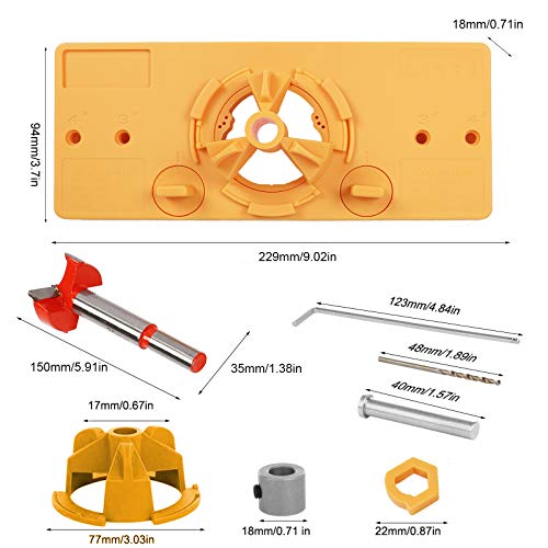 Cerniera Trapano, 35mm Set di Guide per Trapano, Hinge Jig Drill Set,Punta in Metallo Duro con Punta Forata,Localizzatore di Fori Strumenti di Lavorazione del Legno Fai da Te (Giallo)