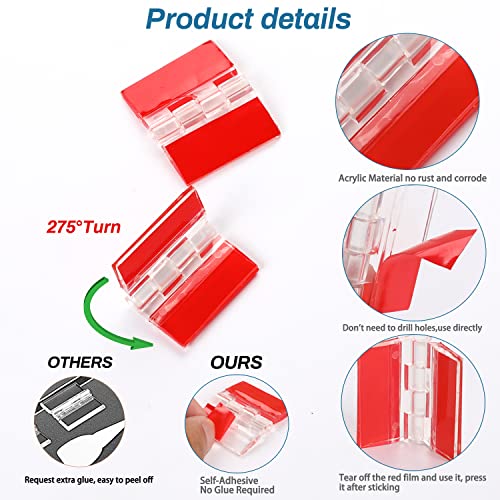 FACILE DA USARE - Cerniera autoadesiva trasparente in acrilico con forte adesivo adesivo, è possibile utilizzare queste piccole cerniere senza colla aggiuntiva.