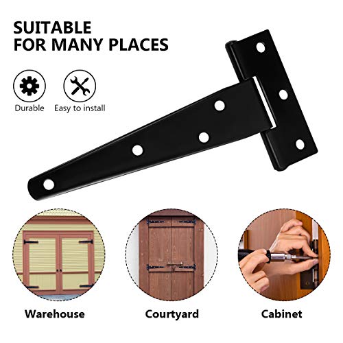 Cerniere per Cancelli con Cerniera a T da 6 Pezzi Cerniere per Cinturini in Metallo Nero per Impieghi Gravosi per Porte di Cancelli Porte per Capannoni E Porte da Fienile 5