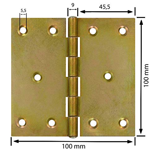 20 pezzi cerniera bordi porta cerniera 100 X 100 X 2,0 mm giallo zincato
