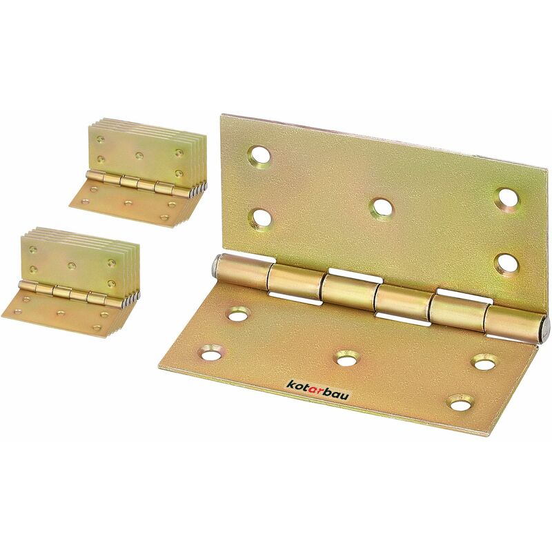 Kotarbau 10 cerniere per porta, 100 x 100 mm, zincate gialle, bordi smussati, per mobili e casse, per armadietti.