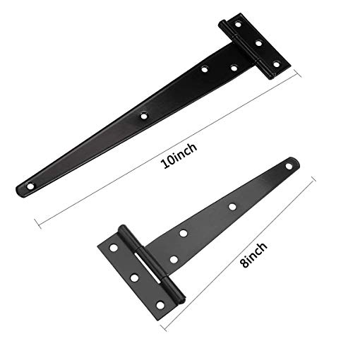 Cerniere a T Zliger 2 Pezzi 8 Pollici Nero Cerniere a T & 2 Pezzi 10 Pollici Metallo Cerniere Porte per Porte Fienili