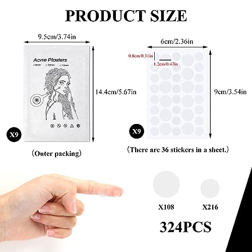 324 cerotti per brufoli in un set: 12mm (108 pezzi), 8mm (216 pezzi), diverse opzioni