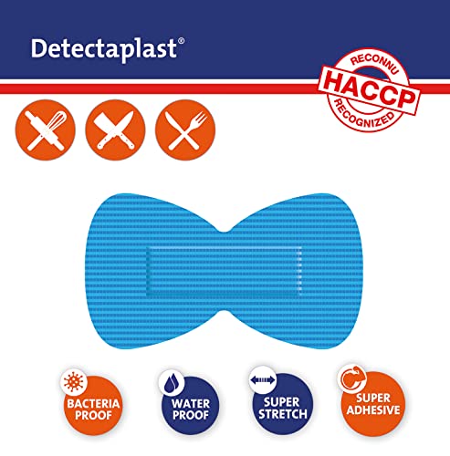 Cerotti detectabili color blu Detectaplast Premium, cerotti impermeabili e resistenti allo sporco, cerotti alimentari, cerotti cucina, catering e ristorazione, 68 x 38 mm (farfalla), 50 pezzi