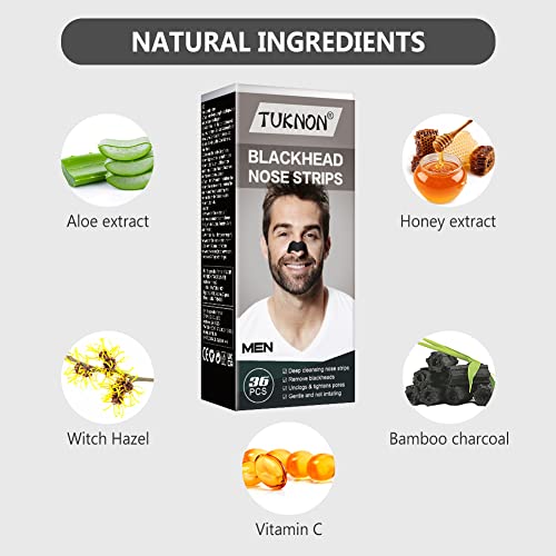 Cerotti Punti Neri, Rimuovi Punti Neri, Nose Strips, Strisce Per Punti Neri, Punti Neri Cerotti, Pulizia Profonda Carbone di Bambù Strisce Nasali per Uomin, 36 Pezzi