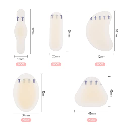 【Informazioni di base】Riceverai 20 pezzi protezione tallone cerotti in 5 dimensioni, rispettivamente 0,7 * 2,4 pollici / 0,8 * 2,4 pollici / 1,5 * 2,2 pollici / 1,7 * 1,8 pollici / 1,7 * 2,4 pollici, 4 pezzi per ogni dimensione, quantità e forme sufficienti possono soddisfare le tue diverse esigenze.