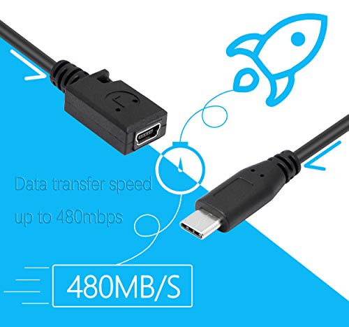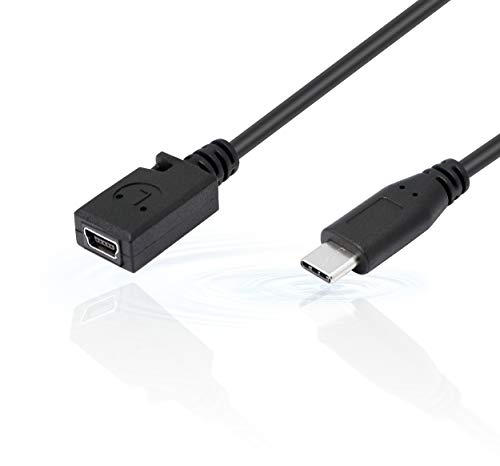 Cerrxian, cavo di estensione USB di tipo C, da Mini USB 2.0 femmina a USB di tipo C maschio, cavo di ricarica e sincronizzazione, adattatore e convertitore, cavo lungo 25,4 cm