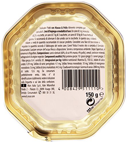 Cesar - Ricette Classiche, Alimento completo per cani adulti, Delicato Paté con Manzo e Pollo - 150 g