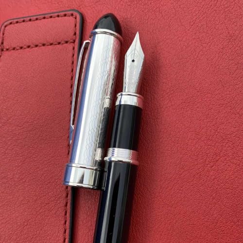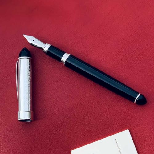 Cesare Emiliano Penna Stilografica in Argento Massiccio 925 e Resina Laccata Nera, Incisione Personalizzata Inclusa