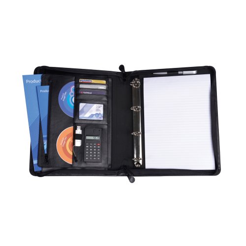 Deluxe in pelle con zip raccoglitori ad anelli, con con calcolatrice
