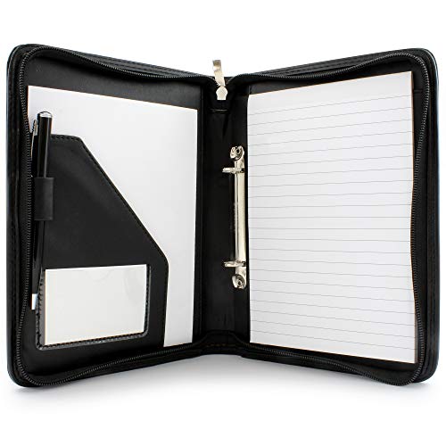 Cescahide - Raccoglitore ad anelli, formato A5, in tessuto a fibra di pelle, con chiusura lampo, colore: Nero