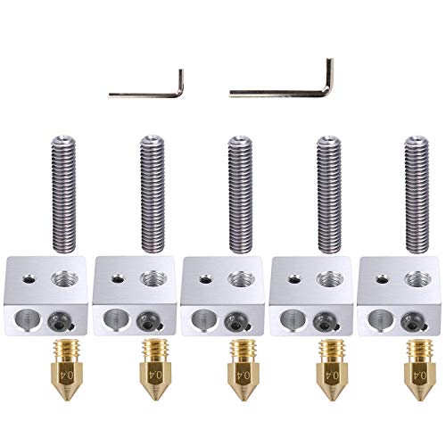 CESFONJER 5PCS M6 3D 0.4mm Estrusore Ugello in Ottone Testina di Stampa + 5PCS 1.75mm Tubo PTFE con 2 Aghi per la Pulizia per MK8 Makerbot RepRap Stampante 3D