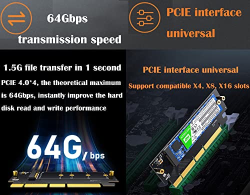 ● Velocità di trasferimento: converte un'interfaccia M.2 con tasto M in un'interfaccia PCIe x16. L'interfaccia PCIe x4 ha una larghezza di banda maggiore e una velocità di trasferimento più elevata, la velocità di trasmissione è di 64 Gbps. Compatibile con l'interfaccia PCIe x4 x8 x16.