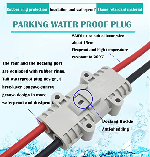 CESFONJER 1 Set Connettore Batteria 50A 600V, Impermeabile Connettore Batteria a Connessione Rapida per condizionatore d'aria, camper, roulotte, barche, con cavo elettrico 8AWG