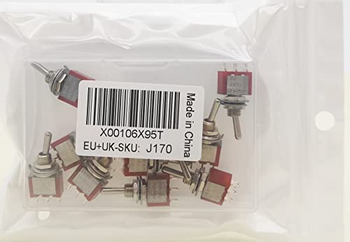 CESFONJER Mini Interruttore a levetta, 3 Pin 3 Position Mini Toggle Switch, AC 125V 6A / 250V 2A 3 Pin SPDT ON-Off-ON (Rosso, 10 Pezzi)