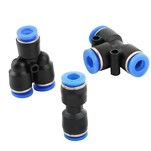 CESFONJER 12 pezzi Connettore Raccordi Rapidi da Pneumatico, Pneumatica 6 mm Raccordi Rapidi, Y Spinta a Forma Di Connettori (6mm: Y+T+I Type Combo)