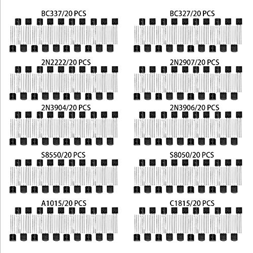CESFONJER TO-92 Assortimento Kit, 10 Tipi di NPN PNP Bipolar Transistor (Confezione da 200 Pezzi) (BC337 BC327 2N2222 2N2907 2N3904 2N3906 S8050 S8550 A1015 C1815)