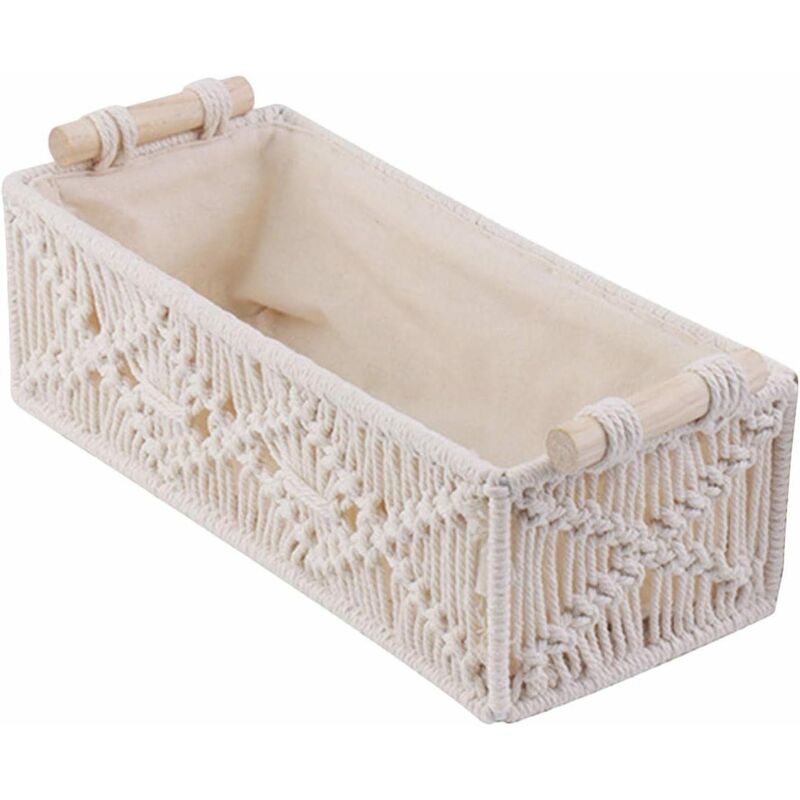Crea un tono suave que combina bien con la decoración moderna de su hogar. Diseño que luce bien y agrega un ligero toque rústico con funcionalidad moderna. Con dos asas para fácil acceso y portabilidad. Te ayudará a ordenar y organizar más que otros, a mantener tu habitación limpia y ordenada. Úsalos para organizar estantes y espacios, agregar a la decoración de tu hogar o almacenar artículos personales cotidianos. Patrón simple y elegante, adecuado para varios estilos de decoración, contiene una variedad de pequeños utensilios y artículos diversos, manteniendo su hogar hermoso y ordenado. Solución liviana para muchas necesidades de almacenamiento para su hogar, oficina, dormitorio, loft u otros apartamentos. Cestas de almacenamiento de macramé Material: Algodón Tamaño: Cesta tejida grande: 34*16,5*10 cm < p>Pequeña cesta de almacenamiento: 30*14*10 cm Lista de paquetes: 1 * cesta trenzada Características: Macramé tejido a mano puro, resistente y duradero;