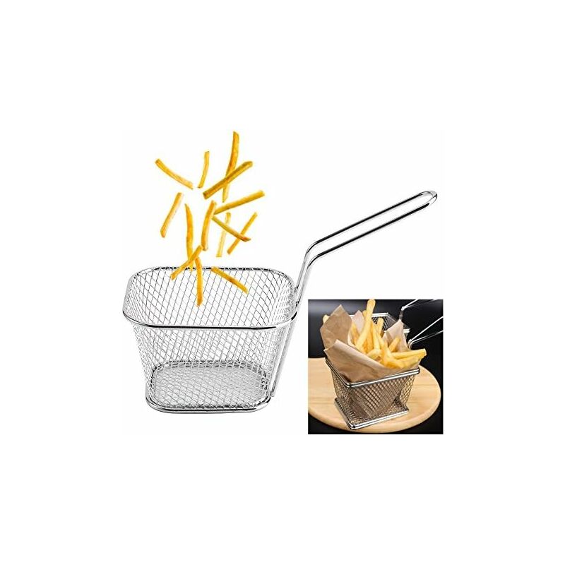 Cestello per friggere in acciaio inossidabile Costruito in acciaio inossidabile di alta qualità, robusto e durevole, privo di corrosione, non si arrugginisce, non si piega, non si rompe o si indebolisce facilmente Il materiale in acciaio inossidabile per uso alimentare consente di toccare direttamente gli alimenti in modo sicuro e facile da pulire Perfetto l'impugnatura in metallo consente alle dita goffe di tenersi ben salde. È anche comodo da riporre poiché il manico può essere appeso al muroPiccolo cestino per patatine fritte ideale per patatine fritte, bastoncini di pollo, anelli di cipolla, gamberetti o qualsiasi altro cibo fritto, potrebbe anche essere un cestino per snack Cestino per patatine fritte individuale ideale per un bar, ristorante o a casa tua, permettendoti di cucinare, bollire o friggere cibi con facilità, molto conveniente