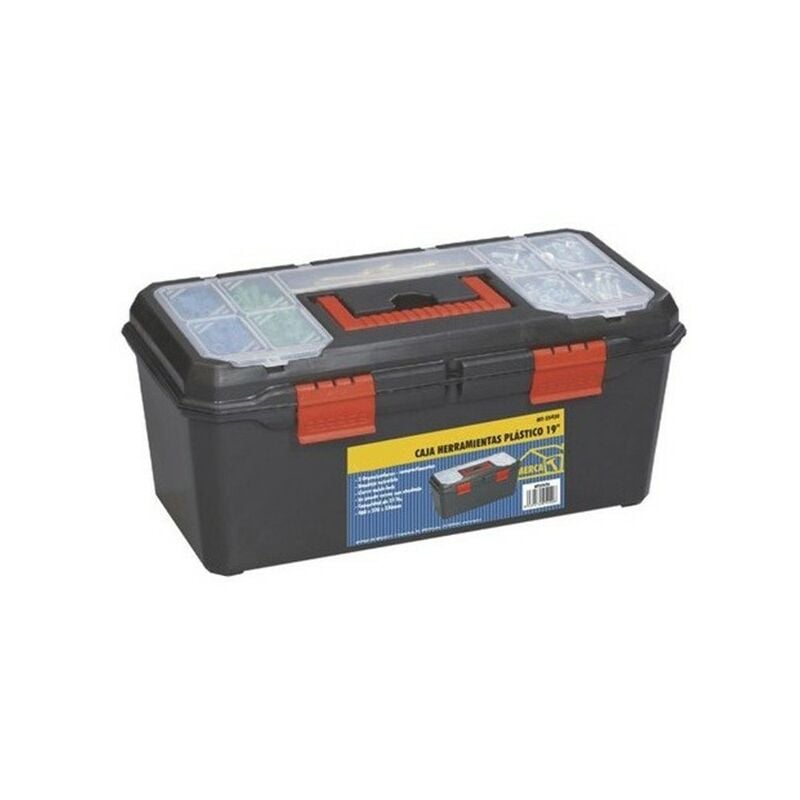 Cassetta degli attrezzi in plastica da 19 gncgarden Cassetta degli attrezzi da 19 . Scomparti del coperchio. Vassoio rimovibile. Chiusura rapida. Può essere chiuso con un lucchetto. Misure 480x230x230. Non include strumenti.