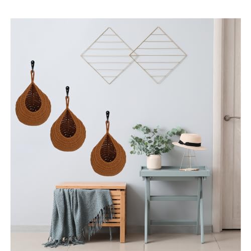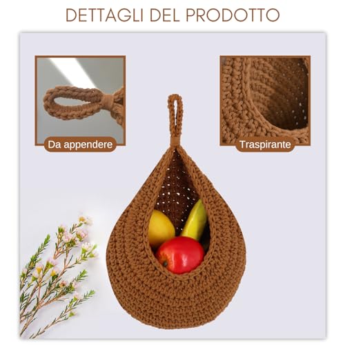 Cesti di frutta appesi per la cucina Boho con 3 ganci robusti. Supporto da appendere intrecciato a mano, cesti per prodotti domestici a goccia, per frutta, verdura (Lino).
