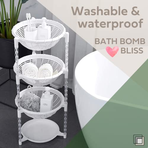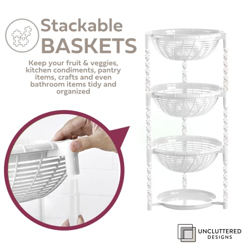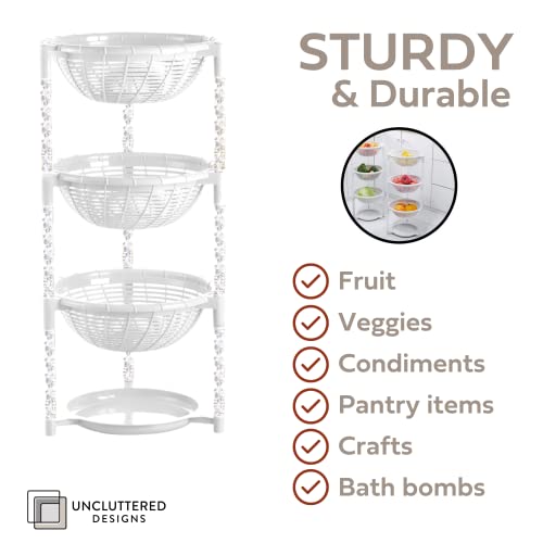 Cesti impilabili Uncluttered Designs (3 cestini + piatto) per Organizzazione e Conservazione di Frutta, Ortaggi, Credenze da Cucina, Dispensa, Armadietti, Stanza da Letto e Bagno (Bianco)