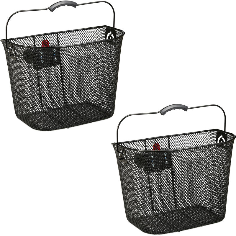 Questo cestino da bicicletta anteriore è adatto sia per gli spostamenti di ogni giorno, sia per giri o escursioni di più lunga distanza. Borse, giacche, coperte da picnic o piccole spese possono comodamente essere trasportate con il cesto da bici. La caratteristica che lo rende più pratico è il suo sistema di aggancio a clic, che consente di fissarlo e di rimuoverlo molto facilmente. Una volta arrivati a destinazione, potrete comodamente sganciarlo dal supporto e portarlo con tutto il suo contenuto direttamente in casa. Cestino da bici in dettaglio - Misure HxLxP: 27 x 34,5 x 26 cm ca. - Peso: 900 g ca. - Capacità di carico max.: 5 kg - Materiale: acciaio - Colore: nero - Set da 2 Cesto anteriore per bicicletta - Facile sistema di aggancio a clic - Sia per spostamenti di ogni giorno, sia per gite - Anche per portare la spesa e piccoli acquisti - Con manico per un comodo trasporto a mano - Maglie strette per evitare che gli oggetti cadano a terra Contenuto della confezione - 2x cestino