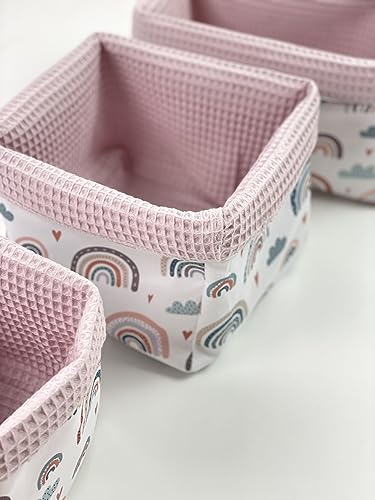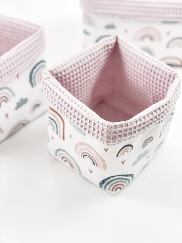 Set di 3 cestini, Cesto fasciato per bambini, 3 Pezzi di Cestini di Cotone, Organizer per il Fasciatoio Neonato, Organizzatore per la stanza dei bambini, Portaoggetti in Cotone, Cestino