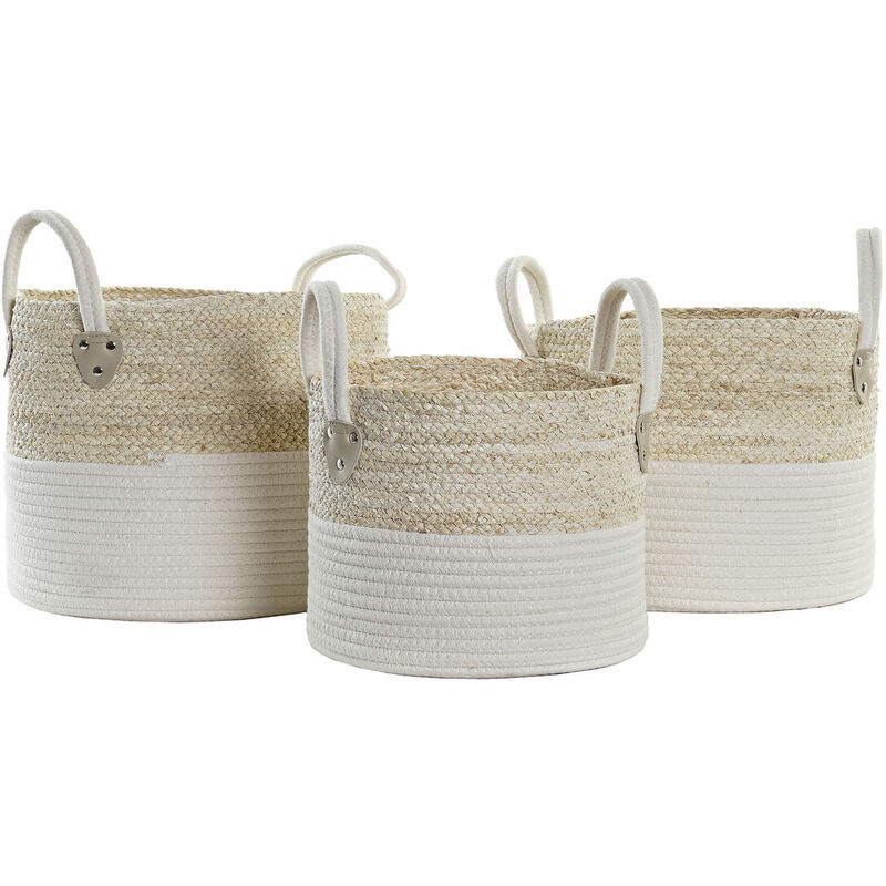 Se vuoi dare un tocco d'originalità alla tua casa, con Set di Cestini DKD Home Decor Bianco Cotone Fibra naturale (35 x 35 x 28 cm) (3 Pezzi) potrai farlo. Colore: Bianco Naturale Materiale: Cotone Fibra naturale Numero di pezzi: 3 Pezzi Dimensioni appross.: 35 x 35 x 28 cm Caratteristiche: Con manici Tipo: Set di Cestini