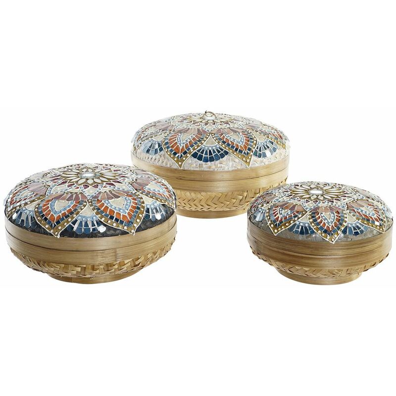Se vuoi dare un tocco d'originalità alla tua casa, con Set di Cestini DKD Home Decor Multicolore Decorativo Bambù (35 x 35 x 20 cm) (3 Pezzi) potrai farlo. Colore: Azzurro Bianco Rosa Naturale Multicolore Materiale: Bambù Numero di pezzi: 3 Pezzi Dimensioni appross.: 35 x 35 x 20 cm Caratteristiche: Con coperchio Tipo: Decorativo Set di Cestini