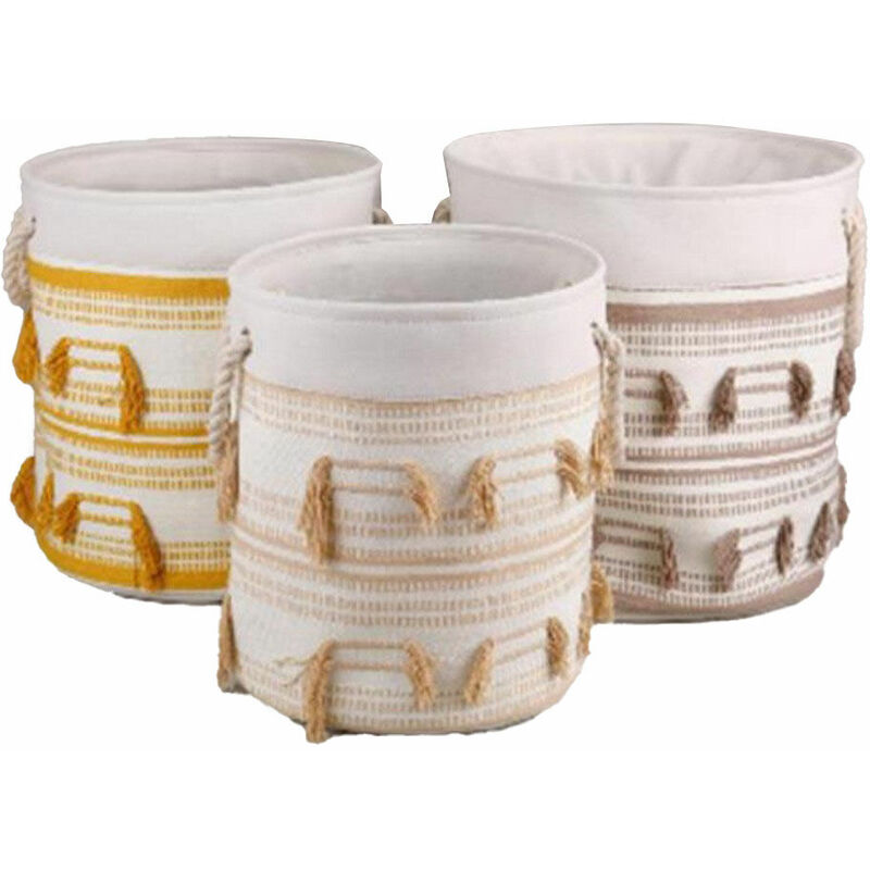 Se vuoi dare un tocco d'originalità alla tua casa, con Set di Cestini DKD Home Decor Poliestere Cotone Frange Boho (43 x 43 x 45 cm) potrai farlo. Colore Beige, Senape Materiale Poliestere, Cotone Design Frange, Boho Dimensioni appross. 43 x 43 x 45 cm Tipo Set di Cestini