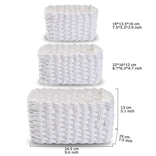 Set di 3 cestini intrecciati, scatole portaoggetti per accessori, trucco, organizzatore per il bagno, organizer per fasciatoio, piccolo Kor Bathroom Storage Baskets (bianco)
