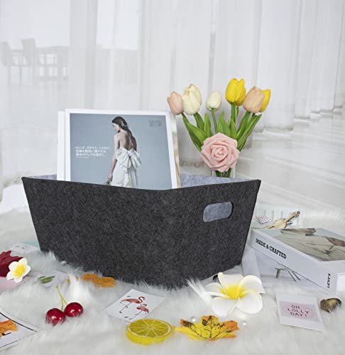 Cestini Portaoggetti in Feltro, Cestino Portaoggetti Ispessito, Cesto Portaoggetti Pieghevole, Scatola Portaoggetti per la casa o l'ufficio (Nero-Grigio, 1 Pezzi)