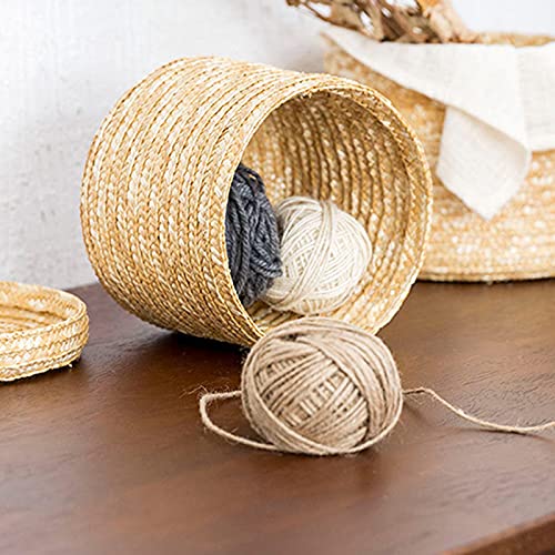 Cestini portaoggetti in paglia intrecciata con coperchio Contenitore per snack in rattan Contenitori multiuso per lavanderia Organizzatore di giocattoli per la casa
