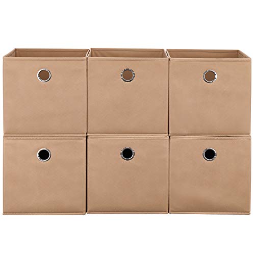 6 Cestini Portaoggetti Pieghevoli in Tessuto, Cestini Portaoggetti a Cubo 28x28x28 cm, Portaoggetti Beige Inserti, QY-SC19-6