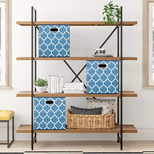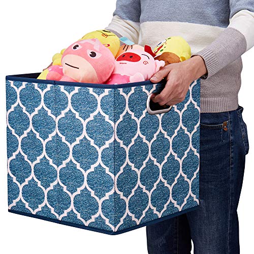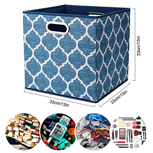 3 Cestini Portaoggetti in Tessuto,Scatole per Vestiti Pieghevoli, Contenitori a Cubo da 33 cm, Portaoggetti Blu Inserti,Bidoni con Stampa a Griglia, QY-SC02-3