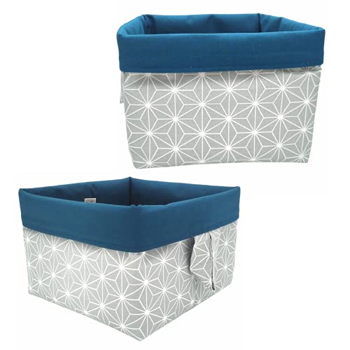 Cestini portaoggetti in tessuto secchi reversibili in cotone organizer per ripiani e scrivanie cesto/scatola/cesto multiuso decorazione (2 GEOMETRIC VERDE/VERDE ENDU)