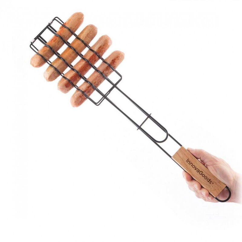 Un cestello per barbecue per hot dog rende super facile grigliare diversi tipi di salsicce e altri cibi. Lo strumento è antiaderente in modo che il cibo non si attacchi e venga cotto in modo più semplice ed efficiente, e il lungo manico in legno offre una presa stabile e sicura. Può essere utilizzato su diversi tipi di grill (carbone, gas, legna, ecc.), ma mai a diretto contatto con le fiamme. - Cestino per barbecue per hot dog - Grigliare salsicce e altri cibi - Può essere utilizzato per tutte le griglie Specifiche: Colore: nero Materiale: ferro, legno Dimensioni: ca. 51 x 8 x 4 cm Capacità: 4 salsicce La confezione contiene: 1x cestino per barbecue per hot dog