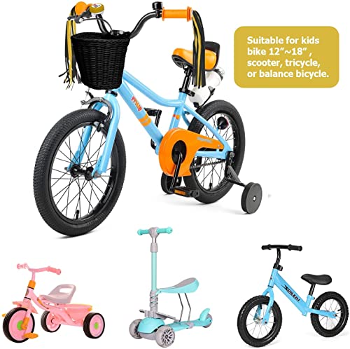 ★ 【MODELLI APPLICABILI】 Questo cestino per biciclette intrecciato è adatto per biciclette per bambini da 12-18 pollici, tricicli per bambini, scooter per bambini e bici senza pedali per bambini. Il cestino può essere riempito con bambole, snack o qualsiasi altro gadget che gli piaccia.