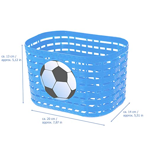 P4B | Cestino per bicicletta per bambini con motivo calcio in blu | Cestino per bicicletta per bambini con chiusure rapide regolabili | Fissaggio con nastri di plastica