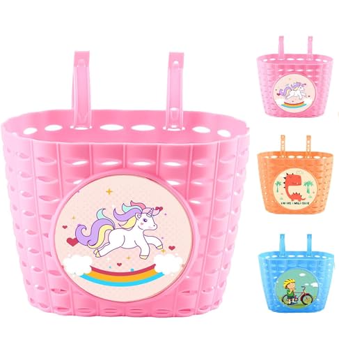 【Set cestini bicicletta bambini Unicorno】Il nostro set di cestini da bici per bambini include 1 cestino da bici rosa per bambini (motivo unicorno), due spallacci rosa regolabili. Adorabile cestino da bici per bambini, molto elastico.